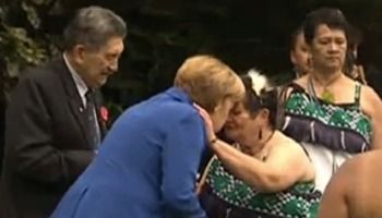 Канцлер Германии Ангела Меркель прибыла в Новую Зеландию для участия в саммите G-20. Во время частной поездки в Окленд Меркель встретилась с представителями маори, коренного народа Новой Зеландии. Глава Германии приняла участие в пофири — традиционной церемонии приветствия маори, когда люди трутся носами.