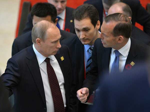 Комментарий редактора: Ранее сообщалось, что 13 ноября четыре корабля ВМФ РФ были зафиксированы у берегов Австралии в районе Брисбена. Русский конвой включал в себя эсминец, крейсер, заправщик и буксир. В свою очередь, Минобороны Австралии направило три военных корабля и разведывательные самолеты для перехвата российских. 14 ноября Владимир Путин прилетел в австралийский Брисбен, где примет участие в саммитах БРИКС и G20, а также проведет ряд двусторонних консультаций с европейскими лидерами. На выходных Путин также планирует встретиться с президентом Франции Франсуа Олландом и премьер-министром Великобритании Дэвидом Кэмероном. Не исключены также беседы с другими главами государства, в том числе с президентом США Бараком Обамой. Эббот уже отмечал ранее, что намерен в ходе саммита G20 «жестко» поговорить с Путиным о крушении малазийского «Боинга» в Донецкой области 17 июля, в котором погибли 298 человек, в том числе 38 австралийцев.