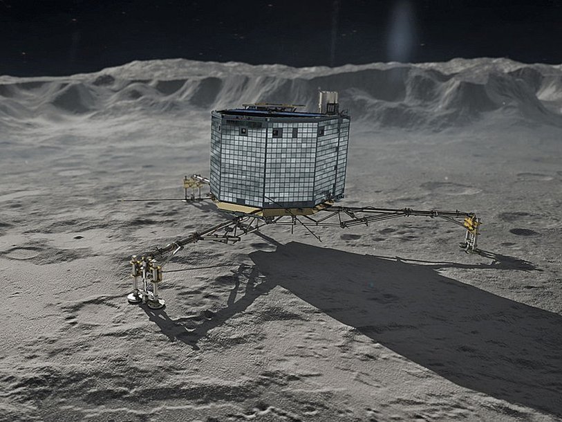 Так может выглядеть модуль Philae на поверхности кометы Wikimedia Commons После тогда, как 12 ноября спускаемый аппарат Philae достиг ядра кометы Чурюмова-Герасименко, поступающие из космоса новости не утратили драматизма. Вскоре выяснилось, что он дважды отскакивал от поверхности кометы и лишь на третий раз сумел остаться. Предназначенные для закрепления на грунте гарпуны не смогли выполнить свою задачу, не сработал и двигатель, который в момент посадки должен был прижать аппарат к грунту. Через некоторое время пришло сообщение, что Philae безопасно стоит на грунте. Аппарат даже передал первые фотоснимки кометы, но затем специалисты объявили о другой проблеме.