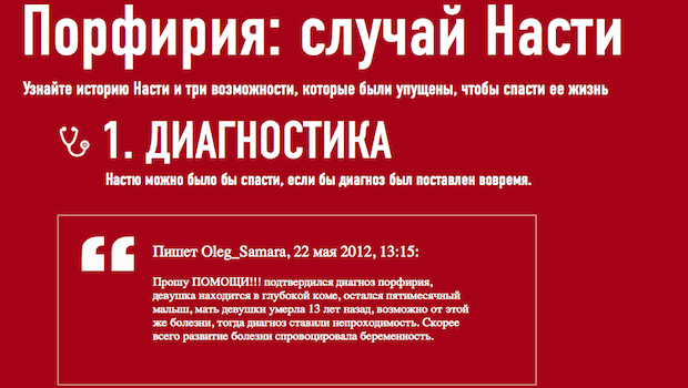 Cлучай Насти – сайт с инфографикой об упущенных возможностях в борьбе с порфирией