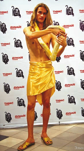 Перед началом мероприятия у входа в зал гостей встречала живая инсталляция «Адам со змеем-искусителем». Желающие могли сфотографироваться с ним и с талисманом мероприятия — дрессированной обезьянкой, разглядеть кости, зубы и челюсти мамонтов из коллекции музея естественной истории Татарстана, посмотреть учебный фильм о поэтапном превращении обезьяны в человека и вживую пообщаться со спикерами.