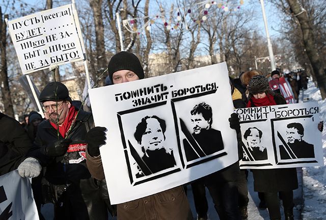 Фото: Зураб Джавахадзе / ТАСС / Scanpix Шествие антифа в память Маркелова и Бабуровой. 19 января 2014-го