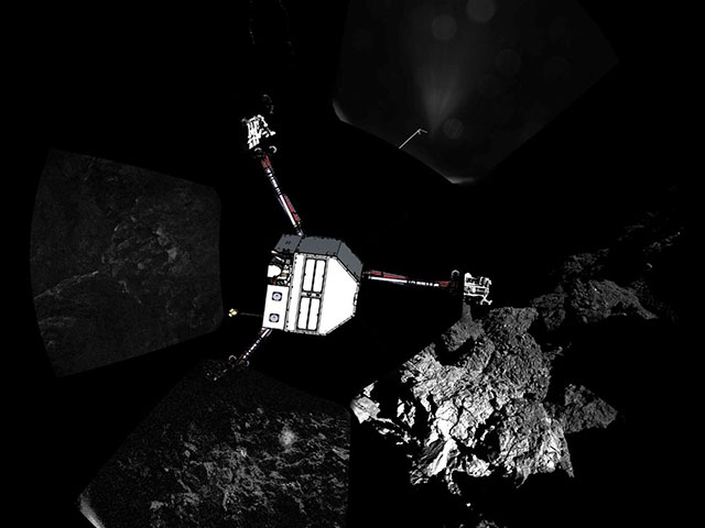 Спускаемый модуль Philae был доставлен к комете Р67/Чурюмова-Герасименко зондом Rosetta, который был запущен в космос 2 марта 2004 года. Цель миссии состоит в том, чтобы получить информацию о зарождении и эволюции Солнечной системы. Rosetta достигла кометы 12 ноября 2014 года. Спуск аппарата Philae на поверхность кометы занял примерно семь часов.