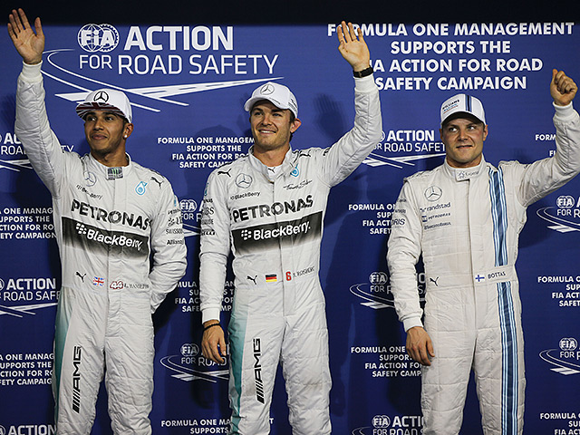 Пилот "Мерседеса" Нико Росберг взял поул в квалификации Гран-при Абу-Даби "Формулы-1". Второе место занял его напарник Льюис Хэмилтон. Третью позицию получил Валтери Боттас на "Уильямсе".
