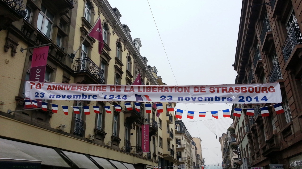 В Страсбурге очень торжественный праздник. Весь город увешан растяжками и флажками. 70 лет освобождения. Деталь: на растяжках не пишут, от чего именно. Просто – Освобождения.