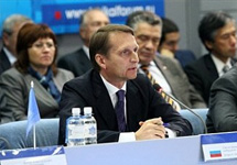 "У меня есть фантастическое предложение: я бы предложил европейским партнерам изгнать из блока США, - заявил Нарышкин. - И я уверен, что уровень стабильности и безопасности в Европе довольно быстро вернется в должное состояние".