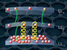 Если же графен поместить в мощное магнитное поле, то проблема решится сама по себе. Из-за уникальной двумерной структуры графена электроны будут двигаться вокруг ядра атомов, а структура электронной оболочки будет намертво зафиксирована. При облучении графена лучом лазера или пучком заряженных частиц в нем возникнет целая семья из однотипных электронов, которые можно использовать для выработки лазерного импульса.
