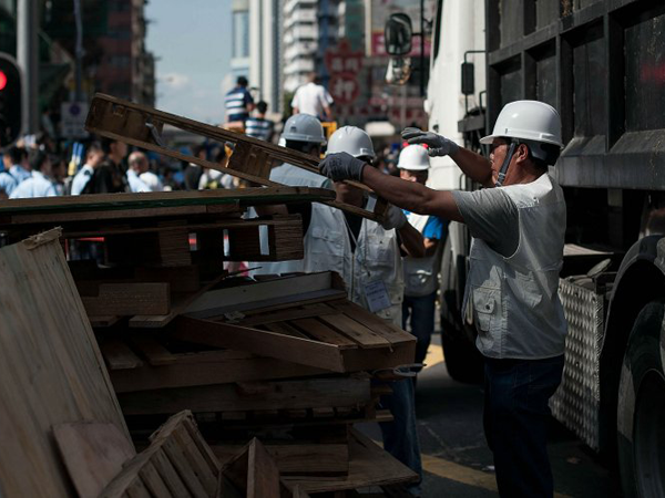 Cудебные приставы Гонконга 25 ноября начали снос баррикад в центре города и расчистку лагеря протестующих после напряженного диалога с толпой демонстрантов. Об этом сообщает South China Morning Post.