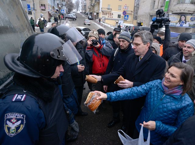 — Наша политика на Украине состоит из двух частей. Во-первых, мы поддерживаем правительство и народ Украины в их стремлении преодолеть трудности, стать более процветающим, более демократическим, более стабильным государством, более мирной и более европейской страной. Мы считаем, что экономические реформы, искоренение коррупции, более тесные связи с Европой, демократизация и децентрализация власти сделают Украину сильнее, сделают ее более независимой, и, если на прямоту, превратят ее в более благополучного соседа.