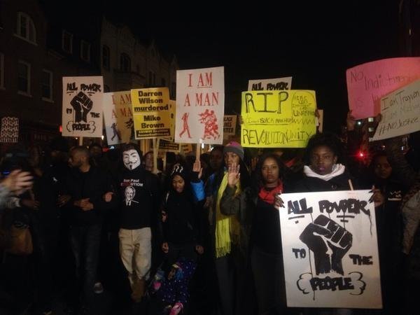 Массовые демонстрации начались после того, как суд присяжных оправдал белого полицейского Даррена Уилсона, который в августе 2014 года застрелил безоружного чернокожего подростка Майкла Брауна.