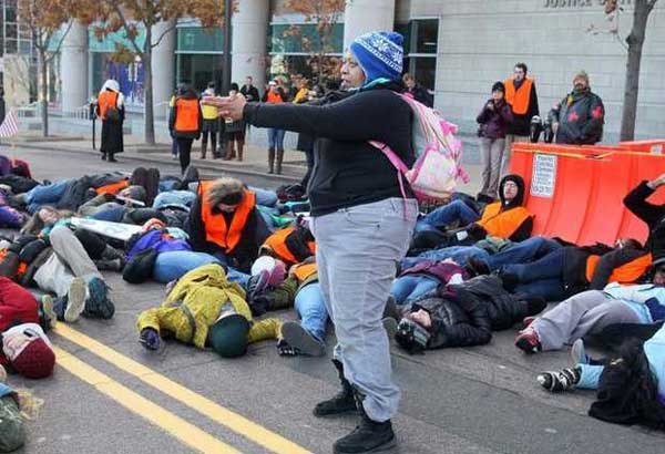 В Нью-Йорке протестующие собрались на Манхэттене, где две ночи подряд скандируют: «У нас нет правосудия, нет мира!», «Полицейского-убийцу под суд!» и «Справедливости Майклу Брауну». В Вашигнтоне около 400 человек пришли с лозунгами к Белому дому, а в Лос-Анджелесе демонстранты устроили акцию лежачего протеста на улице Мартина Лютера Кинга.