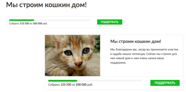 Доступны готовые шаблоны кампаний, «градусники»/«прогресс-бары», а также автоматическое формирование списков доноров.