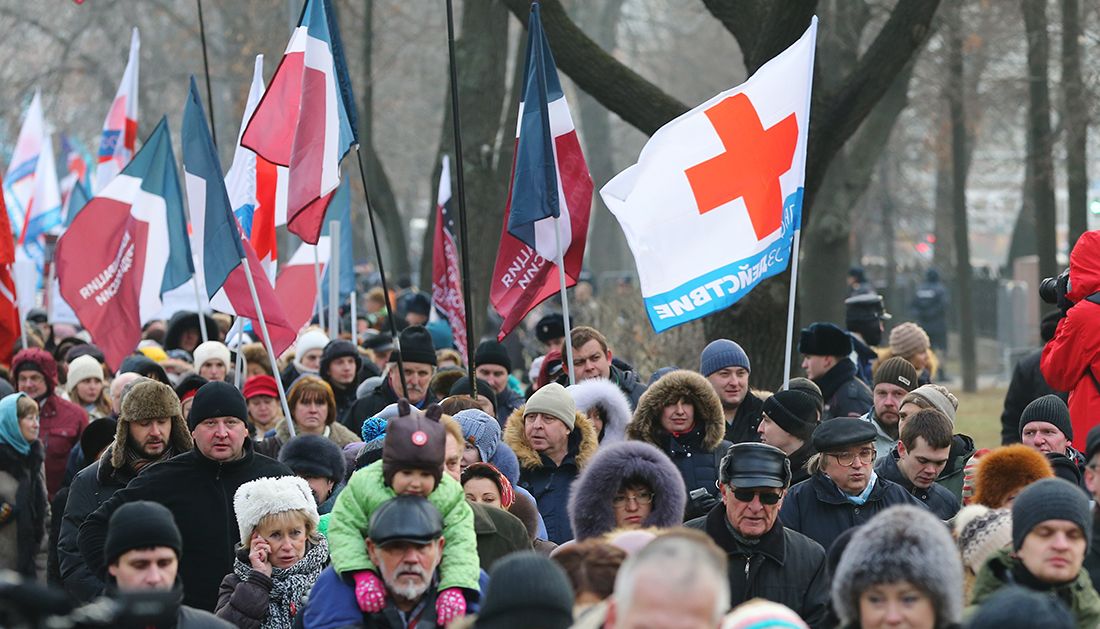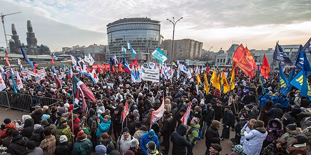 «Эта площадь вмещает десять тысяч человек, и она уже почти полна, — с гордостью сказал со сцены кто-то из организаторов. — Нас почти десять тысяч здесь!» Следует отметить, что это все-таки было преувеличение — площадь заполнилась где-то наполовину. Уже после самых первых выступлений ораторов многие начали уходить — было весьма морозно.