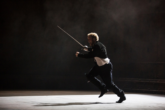 В целом же единственная российская постановка оперы Гуно довольно неожиданно оказалась хороша вовсе не любовными сценами, а драками. Если Ромео и Джульетта любят друг друга очень по-оперному, не зная, куда девать руки, и напряженно думая о самом главном — высокой ноте, то их враждующие родственники бьются прямо по-киношному, вонзают шпаги, изобретательно не сваливаясь в вампучную кучу-малу, увлеченно орут и замирают в эффектных позах. Постановкой фехтовальных потасовок занимался известный голливудский мастер Павел Янчик с целой командой российских умельцев, и для того, чтобы ему было где развернуться, к опере добавлена большая батальная сцена перед увертюрой — именно с нее очень многообещающе начинается спектакль. Даже жалко, что идея превратить мелодраму в боевик совершенно забывается к финалу.