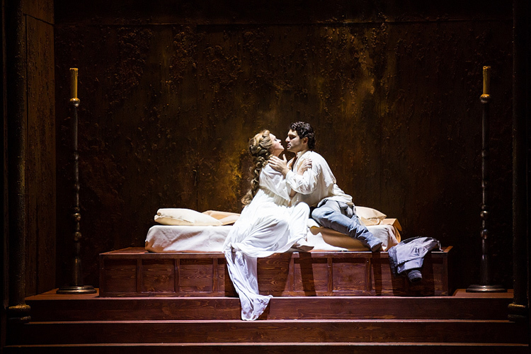 Самым ценным содержимым этой оперы являются четыре любовных дуэта, в том числе финальный, в могильном склепе, ради которого Джульетта должна пробуждаться быстрее, а Ромео умирать медленнее обычного. Так что если есть два хороших главных исполнителя, то дело, можно сказать, сделано процентов на 90. Тем не менее и остальной ансамбль не подкачал, а, скажем, небольшой номер мальчишки-пажа в исполнении Анны Синицыной заслуживает отдельных аплодисментов. Качественные и свежие вокальные силы, которыми без лишнего шума то и дело козыряет «Новая опера», — едва ли не самое привлекательное ее качество.