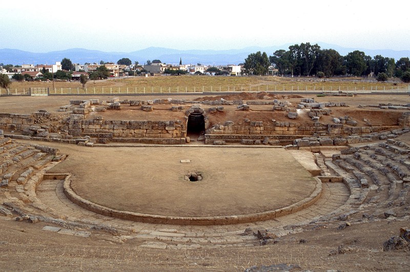 Театр Также в Эретрии были обнаружены античный театр IV-III в. до н.э., дом с напольными мозаиками, терракотовая голова Медузы Горгоны, множество керамических ваз и ламп и самое древнее скульптурное изображение кентавра (X в. до н.э).