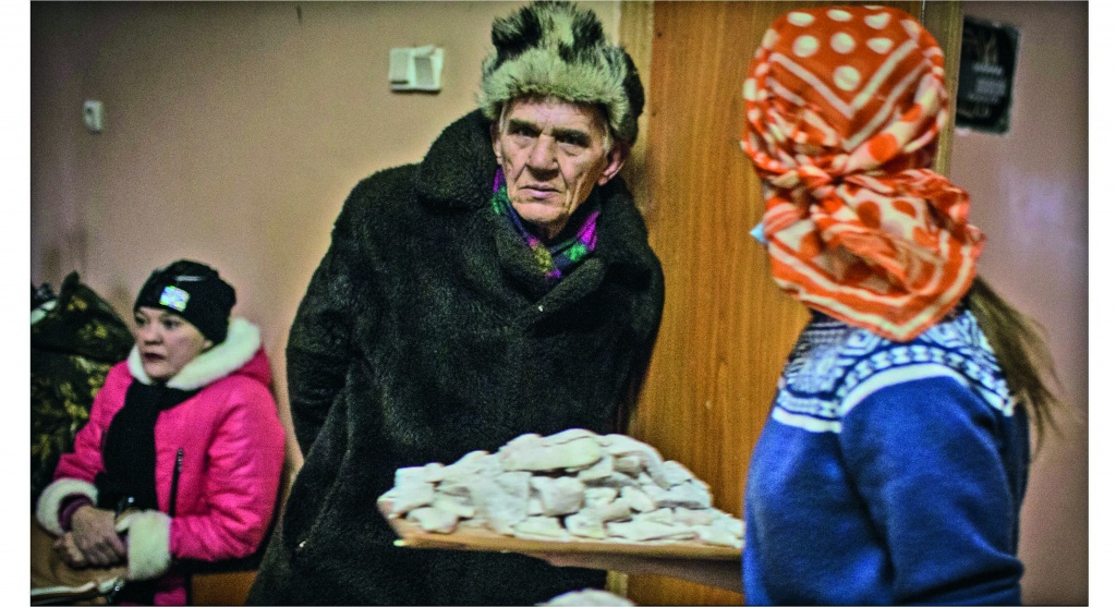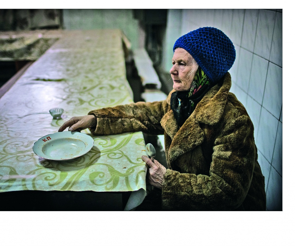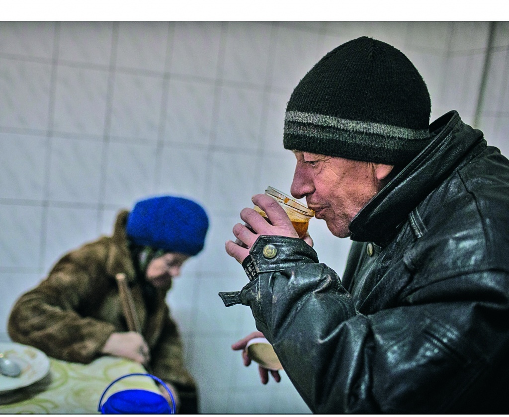 За все месяцы войны в Алчевск, расположенный между Донецком и Луганском, не дошла ни одна из колонн гуманитарной помощи. Город не пострадал от боевых действий, тут нет масштабных разрушений. Зато есть жители, большинство из которых работали на металлургическом заводе — когда-то градообразующем предприятии Алчевска. Теперь завод встал. С лета люди не видели ни зарплат, ни пенсий, — раз в день они могут получить обед в бесплатных «общественных столовых», организованных даже не правительством непризнанной Луганской республики, а подчиненными Алексея Мозгового, командира батальона «Призрак». Всего в Алчевске пять таких столовых, одна из них расположилась в самом центре, в здании бывшего госпиталя.