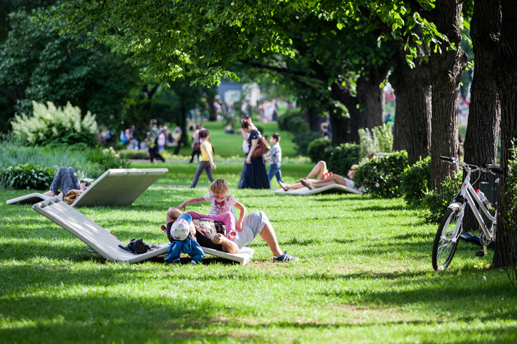 — Я понимаю это следующим образом. У любого пространства, с одной стороны, есть история, с другой — приспособление под современное использование. Если мы меняем идеологию и говорим: «По нашим газонам можно ходить, валяться, кувыркаться и устраивать пикники» — то соответственно мы должны приспособить пространство для этого и сделать парк комфортным и безопасным для людей. Если мы кладем газоны, то опять же — какие? Здесь было такое количество аттракционов, асфальта и всего прочего, что никто не делал экологической экспертизы почвы: что в ней, в каком она состоянии, сколько там вредных веществ. Газон ведь на землю кладется, а на газоне играют дети. Рулонные газоны тоже бывают разные: есть партерные, спортивные и теневые. И тут нельзя просто формально положить газон и забыть, мол, все кладут газоны, дай-ка и я тоже положу.