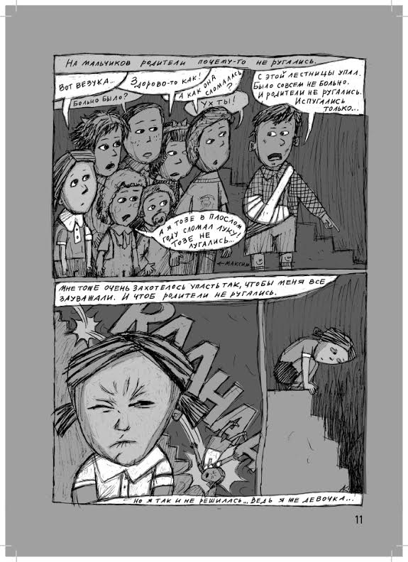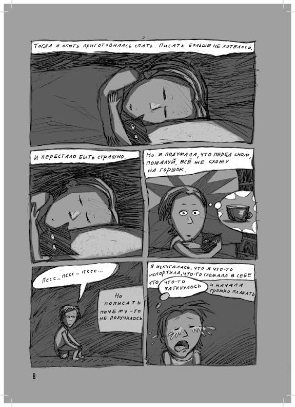 В петербургском издательстве «Бумкнига» вышла книга Алены Камышевской «Мой секс». Графический роман рассказывает об истории взросления нашей современницы, девочки, которая постепенно осознает свою сексуальность и превращается в женщину. Камышевская рассказывает обо всем самом важном в жизни героини, которая ищет и находит любовь, проходит через радости и разочарования на пути достижения чувственного удовольствия, занимается случайным сексом и наконец взрослеет. Текстом уже заинтересовались в Австрии: местный театр думает о постановке графического романа, а в Петербурге «Мой секс» пока можно найти только в книжных магазинах. «Бумага» публикует начало графического романа «Мой секс», в котором первое возбуждение юной героини родители принимают за болезнь почек, дружба с мальчиком обернулась сексуальным скандалом, а попытка вести себя по-мальчишески пресекались бабушкой.