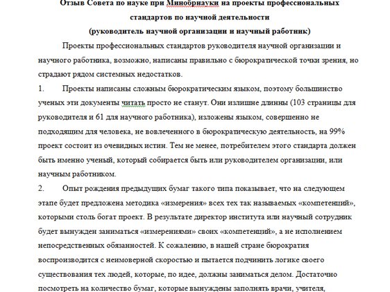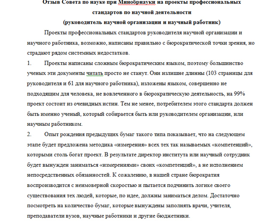 Отзыв Совета по науке при Минобрнауки на проекты профстандартов по научной деятельности