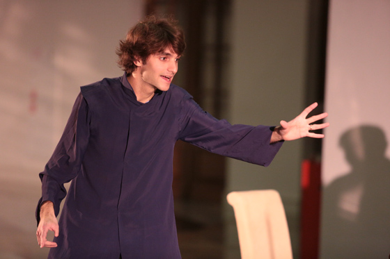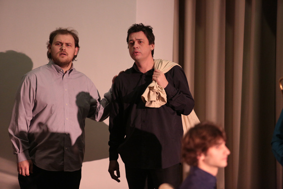 © Олег Черноус / Театр им. Станиславского и Немировича-Данченко Умение сочинять, импровизировать как одно из самых естественных свойств музыканта тех давних веков — нечто прямо противоположное современной оперной выучке. А театр-то, затеявший такое в своих стенах, все-таки оперный. И самым удивительным оказалось, насколько аккуратно и дружелюбно прошло соединение инструменталистов-старинщиков, не первый день общающихся с подобной музыкой, а также требуемыми ею инструментами (помимо самого Великанова, играющего на цинке и клавесине, это были Марина Белова, Андрей Чернышев, Александр Горбунов, Григорий Кротенко, Андриан Принцев и Дмитрий Власик), с несколькими солистами театра, робко вышедшими в новый мир, где не нужно перекрикивать оркестровую яму. Где нужно флиртовать со всеми этими странными дудками и гитарами и не удивляться, если играющие на них люди вдруг решат тебе подпеть. Таковых смельчаков нашлось шестеро — Наталья Мурадымова, Ольга Луцив-Терновская, Светлана Сумачева, Томас Баум, Дмитрий Кондратков и Антон Зараев.