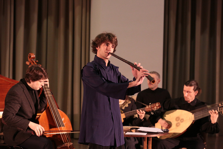 Пустынные огромные помещения, гулкая акустика, бренчит теорба, подхватывает барочная гитара, поддакивает виолон, гнутый цинк выводит мелодии XVI века своим чистым мальчишеским тембром, к нему присоединяется звонкий сакбут, предшественник тромбона, и вместе два духовых голоса уносятся под купол; маленькая виола, прабабушка скрипки, кружится вместе с держащим ее в руках исполнителем, певцы постукивают каблуками и кастаньетами, подтанцовывают ударные. Музыка непонятно когда возникает и непонятно когда заканчивается, она погружает слушателей в бесконечный, текучий и очень комфортный импровизационный поток, окружает их со всех сторон в прямом смысле — потому что музыканты большей частью не стоят на одном месте.