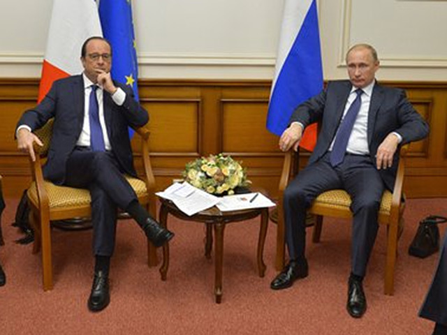 Олланд заявил журналистам: "Необходимо использовать все имеющиеся возможности для урегулирования украинского кризиса... Вместе с президентом Путиным мы рассматриваем как важную цель достижение деэскалации. Мы считаем, что сегодня деэскалация возможна.. Тот инструмент, который у нас имеется для этого - это путь соблюдения минских договоренностей. Напомню, что именно Франция вместе с Германией отчасти стала инициатором этого процесса на саммите в Нормандии". (Цитата по ТАСС.)