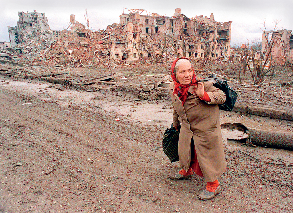 Жительница Грозного возвращается домой после штурма города, Грозный, 19 марта 1995 года. Фото: Владимир Веленгурин/AFP