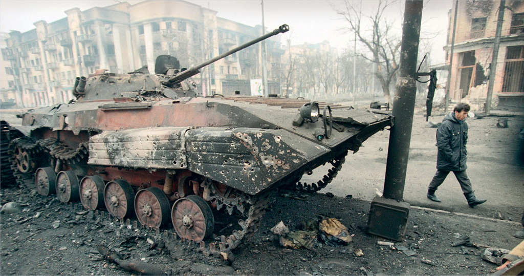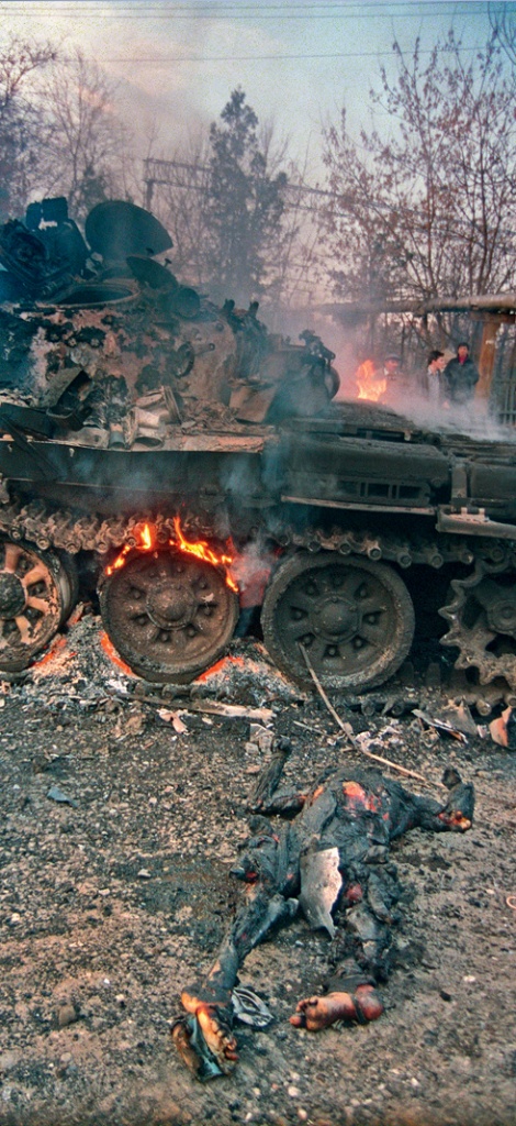 Подбитая бронетехника в центре Грозного после новогоднего штурма, 2 января 1995 года. Фото: AP