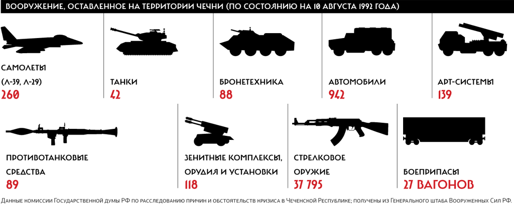 Эта война могла начаться еще осенью 1991 года, когда новоизбранный президент Чечни Джохар Дудаев издал свой первый указ о независимости. В ответ 7 ноября президент Борис Ельцин подписал указ о введении чрезвычайного положения в Чечено-Ингушской АССР, но Верховный Совет РСФСР отказался его утвердить. Следующие два года Москва и Грозный безуспешно пытались договориться о совместном существовании. К 10 июня 1992 года территорию Чечни покинули все федеральные войска, оставив большое количество техники, вооружения и боеприпасов (см. справку ниже). Вопрос Чечни в это время отошел на второй план, федеральная власть проводила болезненные экономические реформы, которые сопровождались развивающимся политическим кризисом в отношениях между президентом и Верховным Советом. Кризисные процессы происходили и в Чечне — у Дудаева очень быстро появилась оппозиция, которая хотела власти и денег. В итоге 17 апреля 1993 года был распущен парламент, и на территории республики было введено прямое президентское правление.