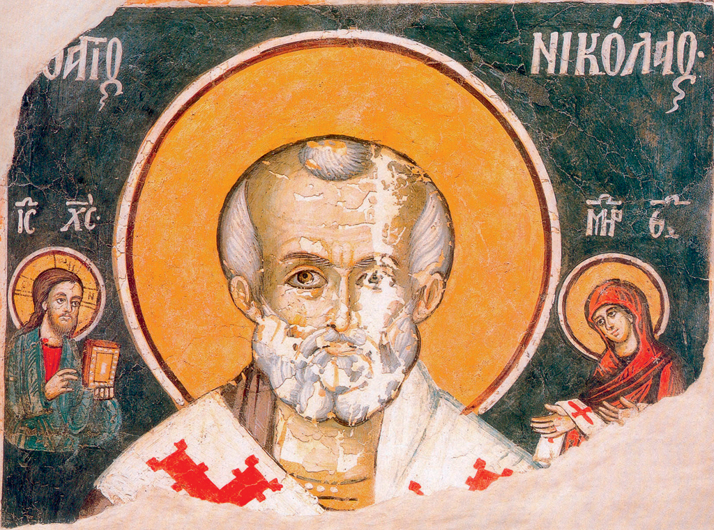 Святой Николай Чудотворец. Фрагмент стенной росписи, Афон, середина XVIII века