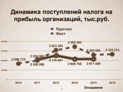 Хочу напомнить, что при принятии проекта бюджета Псковской области на 2014 год в минувшем году Псковское управление Министерства по налогам и сборам выдало свой прогноз поступлений налога на прибыль: не более чем 2,5 млрд рублей, то есть на 750 млн руб. меньше, чем заводилось в бюджет Псковской области. Прогноз налоговой инспекции оказался в высокой степени точен, и очевидно, что на конец года будет ненамного превзойден.