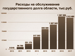 Обслуживание государственного долга подошло к 8% от расходной части бюджета области и является практически непосильным для бюджета Псковской области, всяческое его сокращение необходимо.