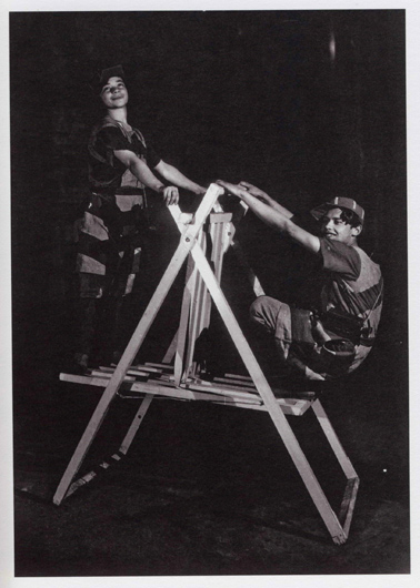 Это то структурное различие, чередование пустоты и заливки, на котором в конечном итоге строится вся их производственническая работа в построении любых утилитарных конструкций, будь то полиграфические структуры для упорядочивания данных (плакаты, журнальная верстка, упаковка) или «установки» (инсталляционные структуры) для театральных спектаклей и клубных постановок.