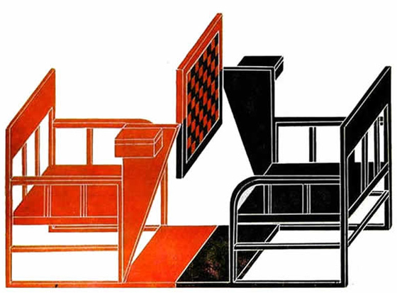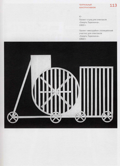 В. Степанова. Трюковая мебель для спектакля «Смерть Тарелкина». Из книжки А.Н. Лаврентьев. Варвара Степанова. Фонд «Русский авангард». М, 2009 Как и в начале, в 1915 году, это чередование черного/белого/красного никогда не было просто абстракцией или формальным ходом — речь всегда шла об отношениях в пространстве, как тогда выражались, «овнешненных» отношениях, овнешненной динамической социальной связи, которую можно выразить и одновременно оформить с помощью пространственной модульной конструкции. То, что вначале обрело свою форму на материале отношений любви, затем начало оформлять и одновременно выражать отношения социальные. Так происходит в установке для «Смерти Тарелкина» (1921) Степановой и в проекте «Рабочего клуба» (1925) Родченко. И там, и там нет, по сути, ничего, кроме чередования черных и белых или красных и белых зон, которые должны работать как сетка, структурирующая, как в модульной верстке полиграфического медиума, то, что происходит в этом пространстве между людьми. Конструктивизм и производственничество, то, чем занимались Степанова и Родченко на протяжении всех 1920-х, никогда не были историей про технологичные вещи и максимально экономичные технические конструкции — они всегда были историей про опространствованные социальные взаимодействия, то есть про отношения, будь то любовные или классовые.