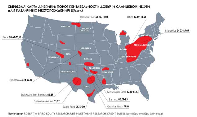 Отвечая на этот вопрос, необходимо учитывать два фактора. Во-первых, за последние два года себестоимость добычи сланцевых углеводородов значительно снизилась. По некоторым оценкам, в 2012 году безубыточной добыча становилась при цене за баррель $70–75. Сегодня же, как сообщает Международное энергетическое агентство, при стоимости добычи одного барреля в $42 владелец буровой на месторождении Bakken в Северной Дакоте, крупнейшем нефтепроизводящем штате Америки, может не только работать безубыточно, но и даже получать 10 % прибыли. А в округе МакКензи, где сосредоточено 72 из 188 буровых штата, средняя себестоимость добычи еще меньше — $30.