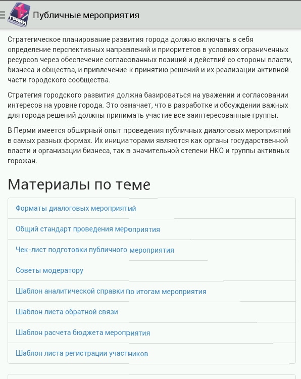 За каждым пунктом могут следовать дополнительные разделы. Так, «Форматы диалоговых мероприятий» делятся на открытые и закрытые. Соответственно, вы получите разные инструкции по их подготовке.