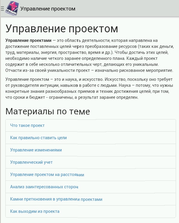 Раздел «Управление проектом» объединяет материалы для руководителей проектов.