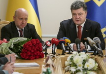 "Сегодня принято, возможно, одно из самых ответственных решений в системе СНБО", - заявил Порошенко, представляя членам совета нового руководителя. Выбор Турчинова на эту должность оптимален, пояснил президент, поскольку кандидатура бывшего спикера лучше всего отвечает требованиям времени.