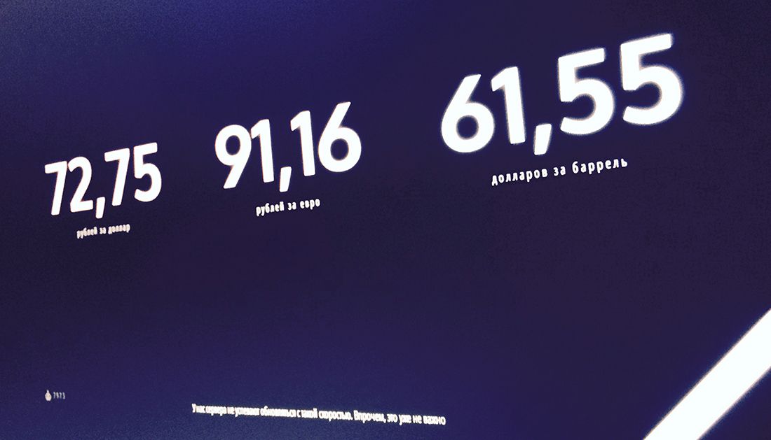 Конечно, если выключить скринсейвер, тут же окажется, что медитации на курс евро — занятие не самое возвышенное. Во-первых, это совершенно не слепые силы судьбы: у этих стихий есть имена, фамилии и всем известный послужной список, который к этим курсам и привел. Во-вторых, надо уже, как завещали классики, поднимать жопу и идти работать — если ничего не предпринимать, при такой динамике Новый год может для многих пройти под лозунгом «Купи еды в последний раз». В-третьих, это попросту глупо.