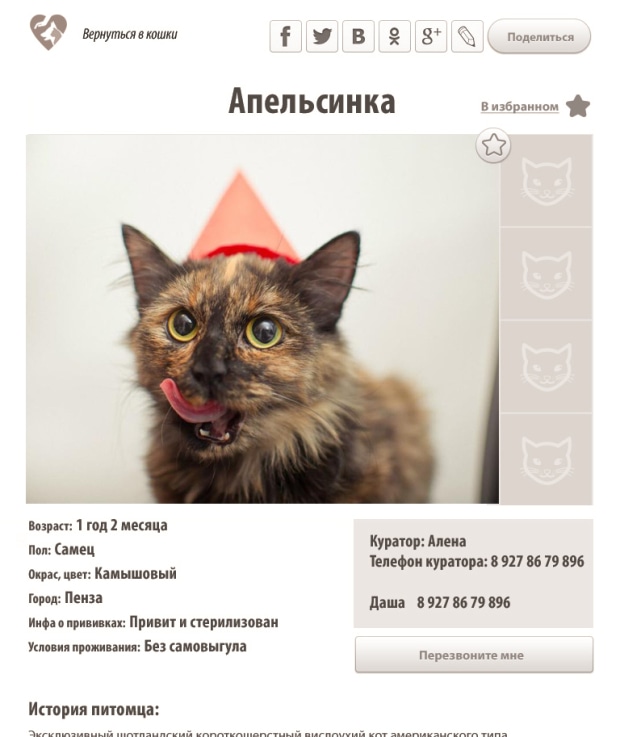 Екатерине Федотовой (Пенза) наиболее симпатичен веб-сервис «В добрые руки». Он разрабатывается для всех, кто хочет приютить у себя четвероногого друга, уменьшив количество бездомных животных в городе. «В добрые руки» стал победителем нашего хакатона Penza City Upgrade, поэтому «Теплица» внимательно следит за его судьбой.