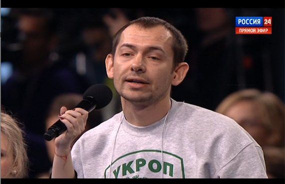 «Россия-24» развлекается в прямом эфире. Обращает внимание зрителей, что в зал уже пришли представители газеты «Трезвый Петроград».