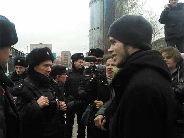Собравшихся - около 40 человек - встретила полиция уже на выходе из метро. При этом, как сообщается в Twitter очевидца, сотрудники правоохранительных органов отказались предъявить документы и начали задержания.