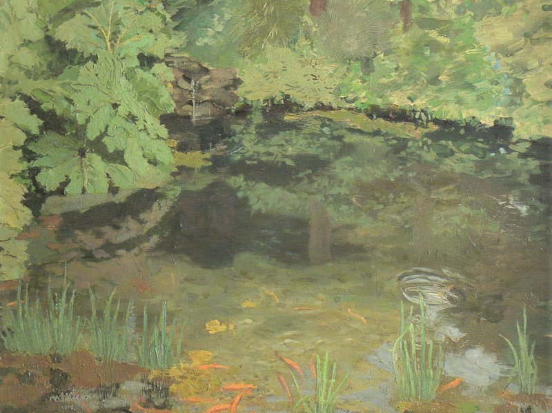 Картина «Пруд с золотыми рыбками в Чартвелле» стала достоянием общественности лишь в 2008 году, когда она была случайно обнаружена на чердаке одного из домов в Оксфорде. Известно, что Уинстон Черчиль увлекался живописью, однако к своим навыкам в этой сфере он относился весьма скептически, в связи с чем он очень редко подписывал свои работы.
