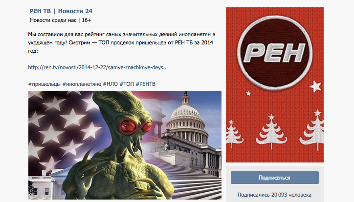 TJournal классифицировал новости РЕН-ТВ об инопланетянах и звездах
