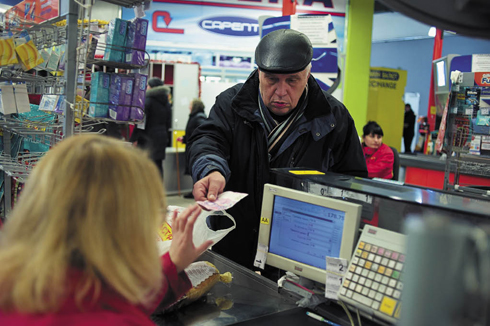На следующий день по центральной улице занятого украинскими войсками города Волноваха, в 70 км к югу от Донецка, с потерянным видом от одного банкомата к другому бродит стайка женщин. Оформить счет — полбеды, отдельная проблема — снять деньги с карточки. С 1 декабря Украина заблокировала все банковские транзакции на территории ДНР и наличные стали главным дефицитом в непризнанной республике. К часу дня в Волновахе банкоматы уже пусты. Обналичиться можно лишь в скромном магазине бытовой техники в центре города, но полулегально и за 5 % от суммы. Покупать ничего не нужно: просто провести карточкой по портативному терминалу, продавец достанет из кассы деньги и отсчитает сколько положено за вычетом процентов. Подобные услуги популярны и в Донецке.