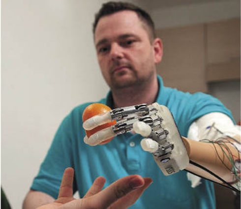В 2014 году впервые удалось создать протез с обратной связью — датчанин Деннис Аабо Соренсен, потерявший руку при попытке устроить фейерверк для своей семьи, стал первым человеком с протезом, способным чувствовать. Итальянские и швейцарские инженеры смогли «подключить» искусственную руку к нервам датчанина с помощью ультратонких электродов, вживленных ему в руку. Теперь Соренсен, потерявший руку девять лет назад, может управлять протезом мысленными приказами и чувствовать, что он сжимает и насколько сильно.
