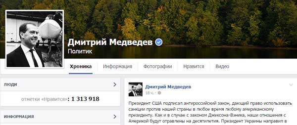 Премьер-министр России Дмитрий Медведев решил выступить в социальной сети Facebook насчет только что принятого американскими законодателями акта, позволяющего расширять санкции против России.
