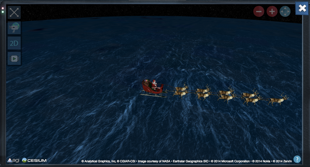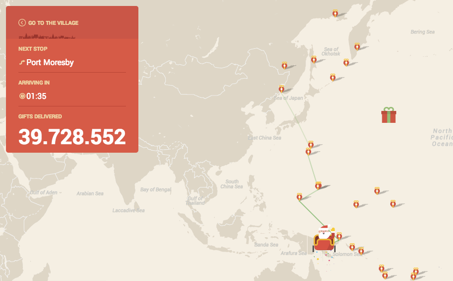 На сайте командования воздушно-космической обороны Северной Америки (NORAD) запустился ежегодный сервис отслеживания перемещения Санта-Клауса по планете. На карте в режиме реального времени можно видеть, где находится повозка с оленями и какие места Санта уже посетил.