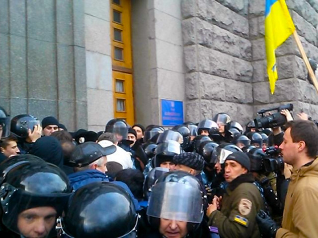 Беспорядки у мэрии Харькова: противники мэра Кернеса пытались прорваться внутрь с криками "Гепу на нары!"
